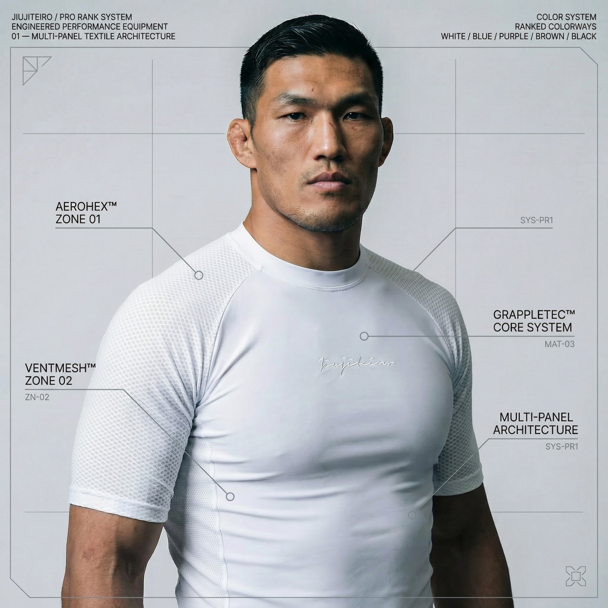 The Pro Ranked Rashguard is the next evolution of training gear in Brazilian Jiu-Jitsu. Engineered with a multi-panel system of advanced textiles, it delivers precision performance through body-mapped construction. Cooling where heat builds up, reinforcing where muscles fatigue, and resisting wear where friction is highest—this rashguard is built as an extension of the athlete. Every detail was designed with purpose, making it not just apparel, but performance equipment.
